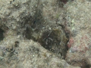 I would love to find an empty one of these shells, but didn't. I am pretty sure there was someone inside this one. It is disguised by sea gunk, so it looks a lot like the bottom. And speaking of looking like the bottom....
