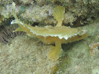 Juveniles: barred file fish above and bird wrasse below. I do not often see the bird wrasses here, so it was a nice surprise.