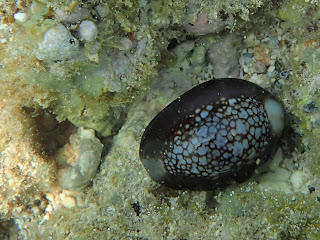 Turban Shell. I think this one had a Hermit Crab inside, from the way it wiggled. But I didn't pick it up. This is the shell that produces the opercula that I collect. (Which I did many times this past two days.)