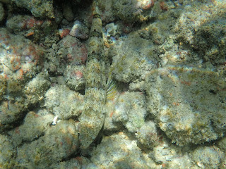 I saw just after I was thinking about warning someone not to walk on the bottom with bare feet. Timing is everything. Luckily for the guy who was doing the walking, I often see these venomous fish hiding under or near rocks, so you would almost have to be trying to step on one. But here's hoping you'll swim and not walk, so that won't be an issue!