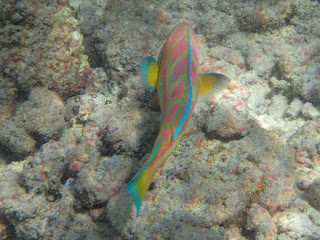 That lined wrasse. I've only ever seen one that I remember...and it sticks around out near the wave break.