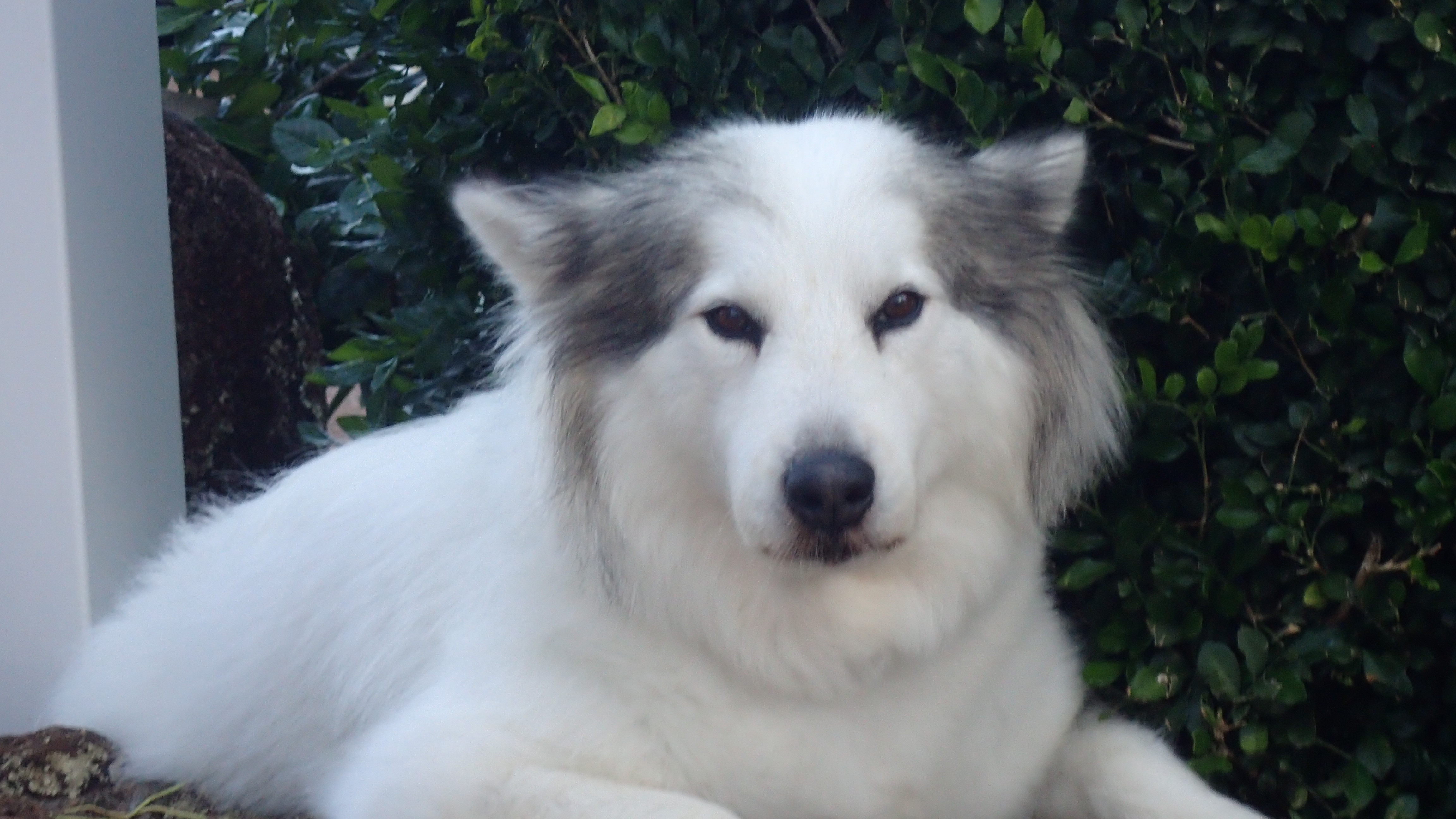 This nice snow dog leaned on the fence for a pat, but I didn't oblige: the German Shepherd was putting up a fuss. I don't mess with the dogs who have the strongest bite!
