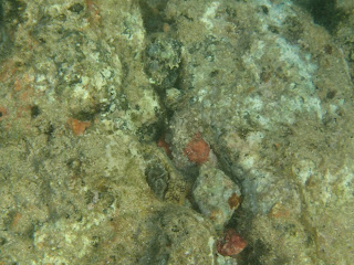 Octopus #1. To the left of the red rock in the middle. You can see the head and a bit of arm... hey! They live by the camouflage, right? Why would it be easy? Both the octopuses I saw today were quite shy. Where are the big adults, who don't care about visitors and who fly across the seascape? But truly, I'm thankful for any and all octopuses that I see. I KNOW there are other cool animals, but there's just something about an octopus. Very unusual, fairly rare and complicated. Would I lie?