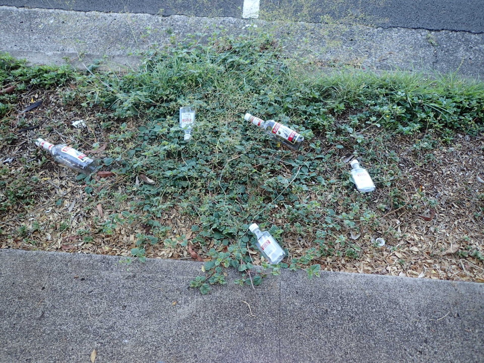 Someone had quite a party. Shame! And there were 3 more bottles on the grass that wouldn't fit in the photo!